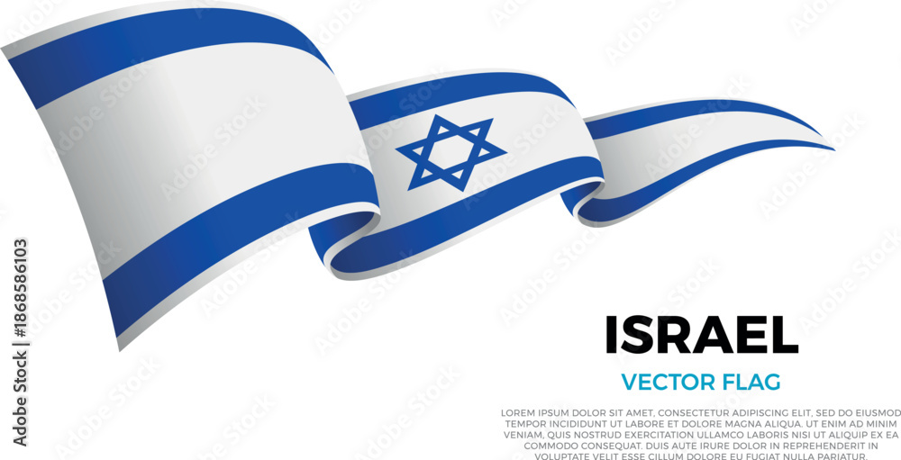 Flag of Israel. Israeli and Mediterranean and Arab Culture. Shining flag with realistic shadows waving in three layers. The elegant curves and realistic shading create a sense of motion #1868586103
