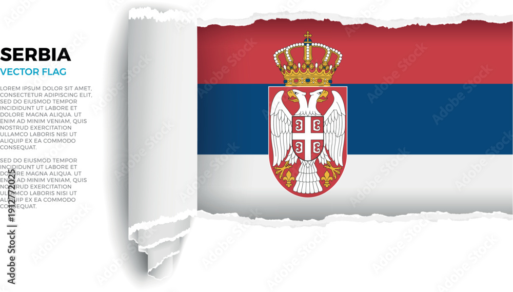 Flag of Serbia. Flag revealed through torn paper rolled up on a transparent background #1912772025