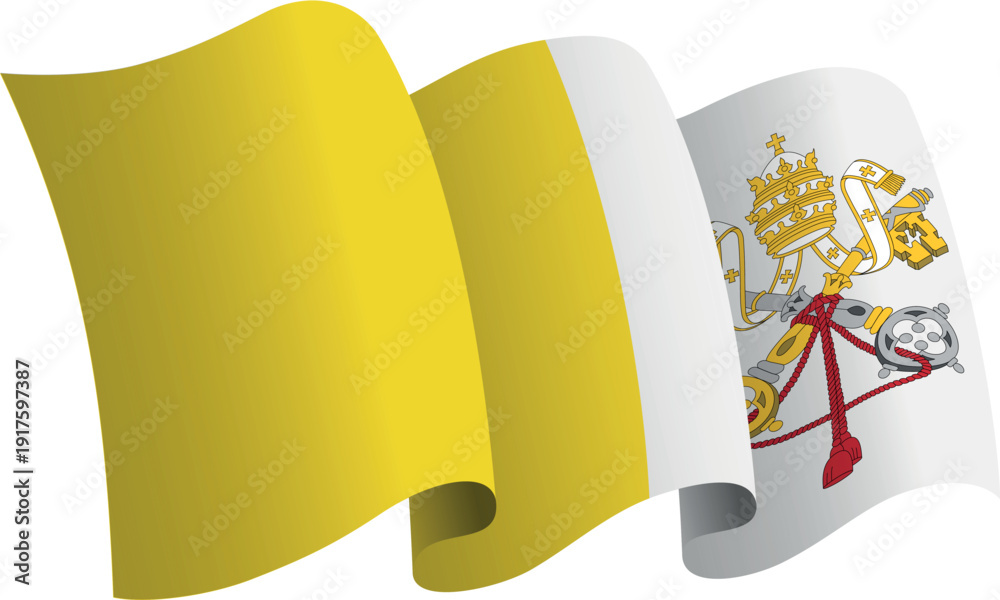 Flag of Vatican City. Ribbon style flag that conveys a sense of movement and waving effect #1917597387