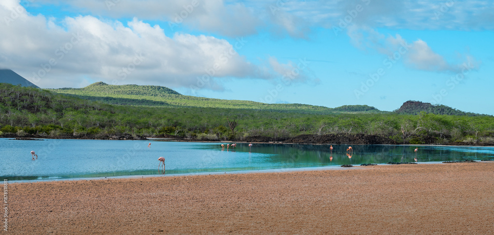 Flamingo Bay and Beach Landscape on Floreana Island at Punta Cormorant, Galapagos #1878518881