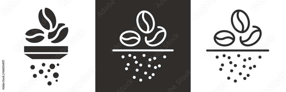 flat and linear set icons, grind coffee icon, coffee grinder, simple symbols on white and black background - editable stroke vector illustration #1660364117