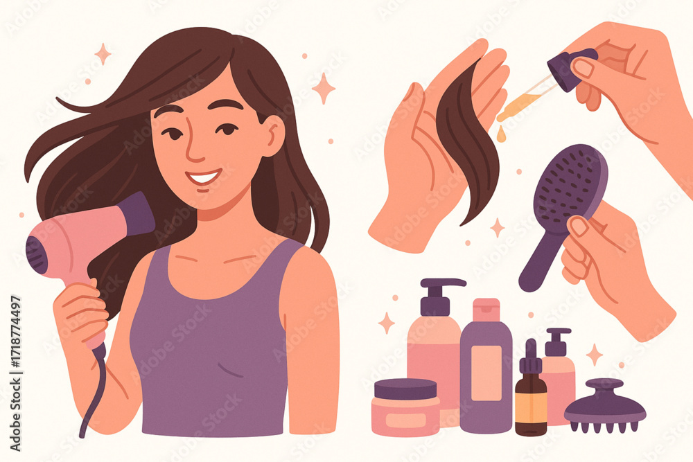 Flat Hair Care and Beauty Routine Icon Collection in Pastel Minimal Style #1718774497
