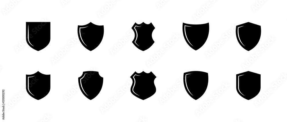 Flat vector icons set of shield shapes - minimalist black silhouettes. #1310010292