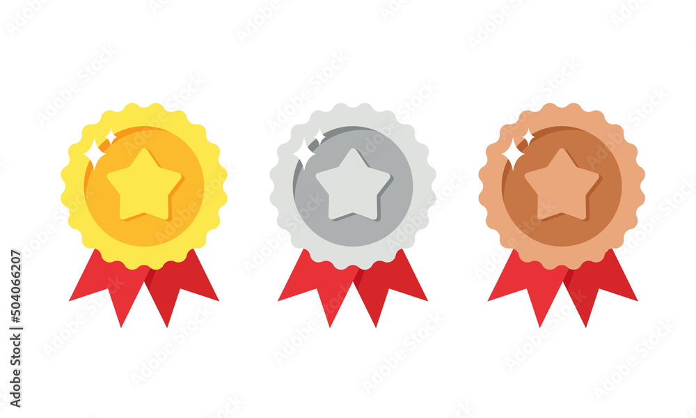 Flat vector illustration of gold, silver, and bronze medal with star. Suitable for design element of award medal, best prize badge, and winner symbol. #504066207