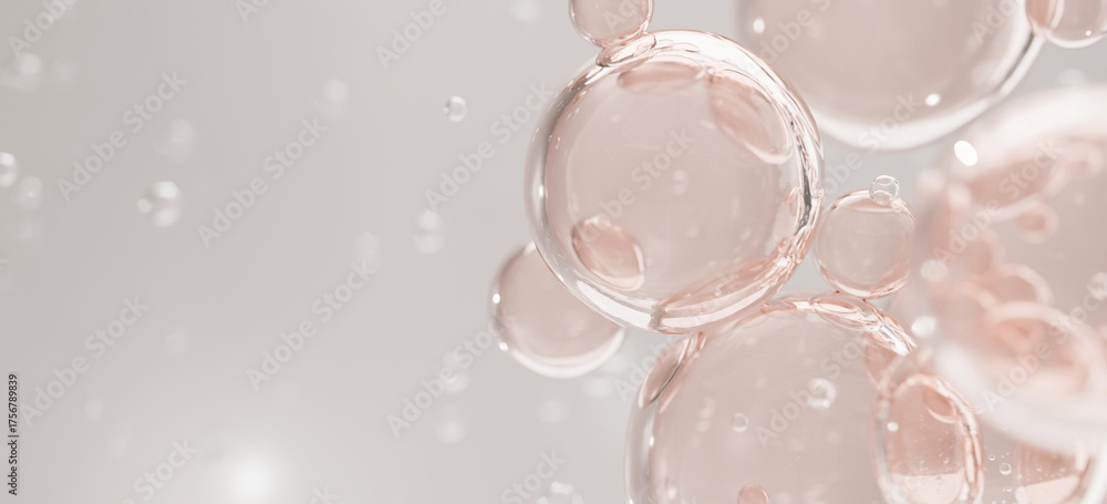 Floating 3D pink serum spheres on soft white background. Perfect for luxury skincare, anti-aging, and hydration-focused cosmetic visuals. #1756789839