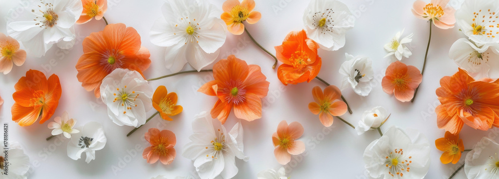 Floral Symphony: Delicate blossoms in shades of orange and white create a captivating display, their petals artfully arranged to showcase natural beauty. #1781816821