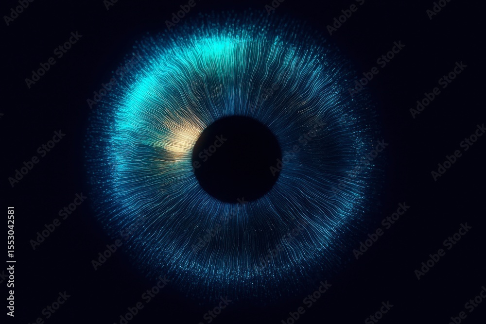 Flow of Light Particles Forming an Abstract Eye-like Vortex on Black. Conceptual Iris. Technology Websites, Sci-Fi, Digital Portfolios, Futuristic Branding, Security, Surveillance Themes. Background #1553042581