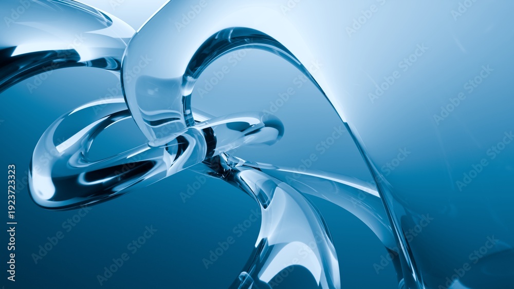 Fluid liquid blue glass shapes and spheres abstract background. #1923723323