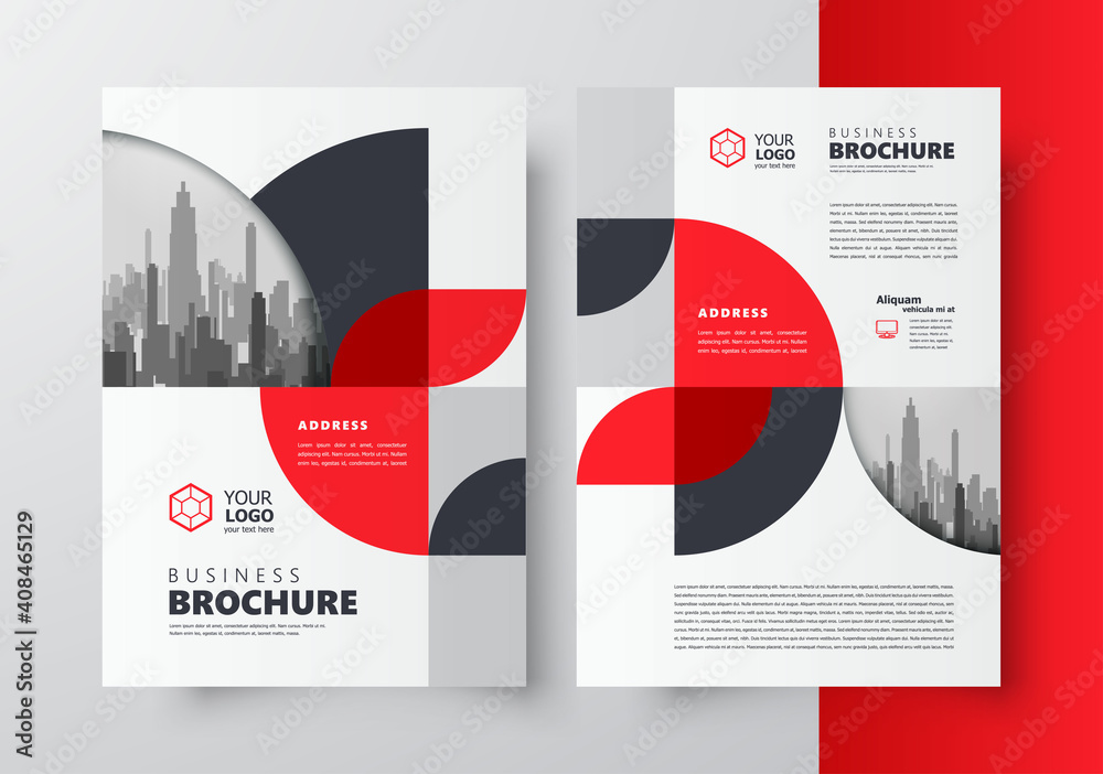 Flyer brochure design template business cover geometric theme circles red #408465129