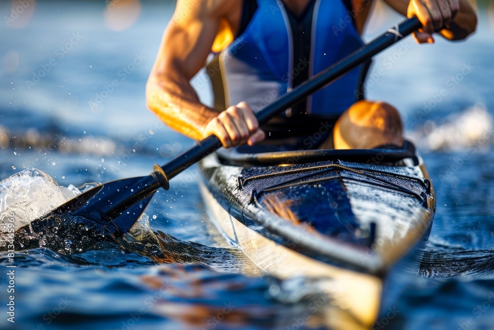 Focused canoeist maneuvering through rough waters summer olympic games sport concept #813465966