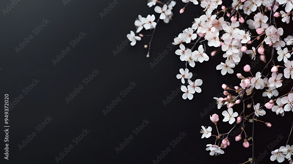 fondo negro en contraste con las flores pequeñas y elegantes en tono rosa pastel tenue decorativas con espacio de copia #949372020