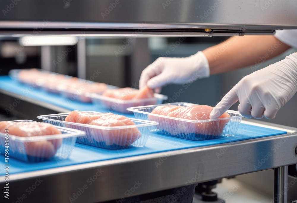Food processing line with transparent packaging and gloves #1736450660