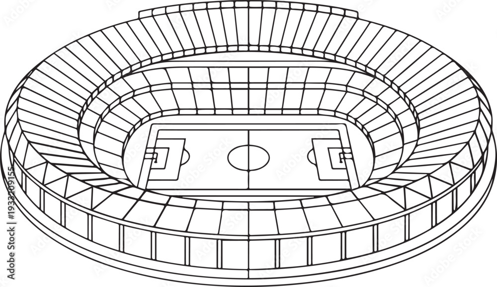 football stadium 3D vector illustration. one line Icon drawing #1933209155