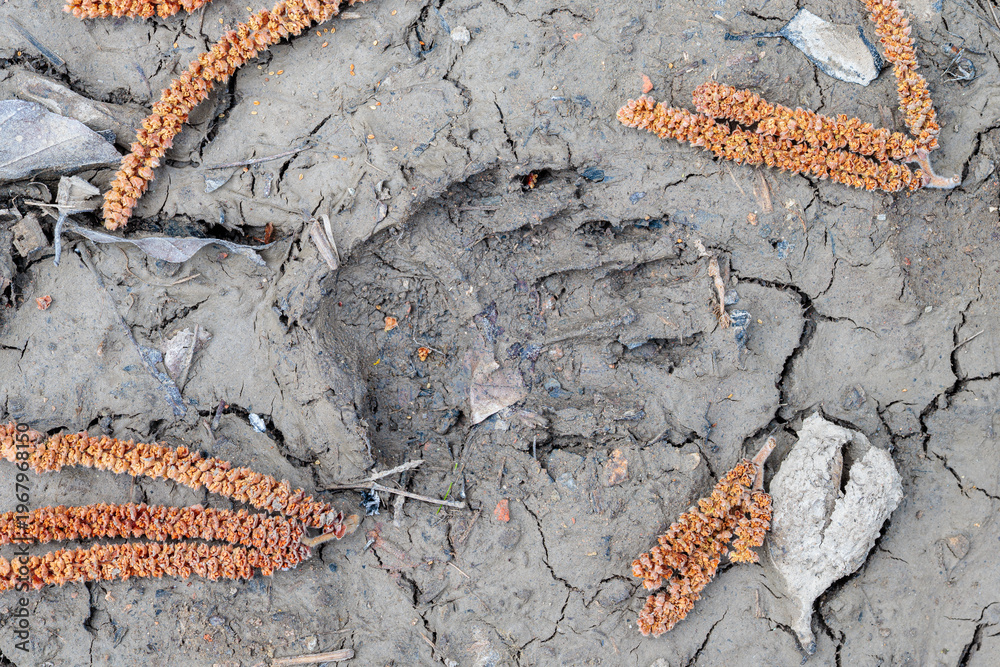 Footprint of a Common or European Badger on the mud. Meles meles. #1967968150