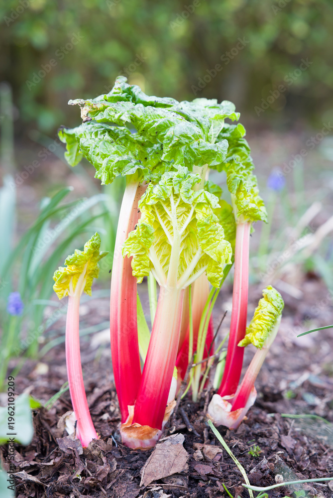 Forced rhurbarb stems growing in a UK garden in spring #1962109209