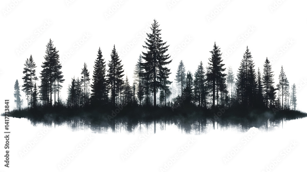 forest treeline silhouette isolated on white background, high-definition, realistic look #1417213841