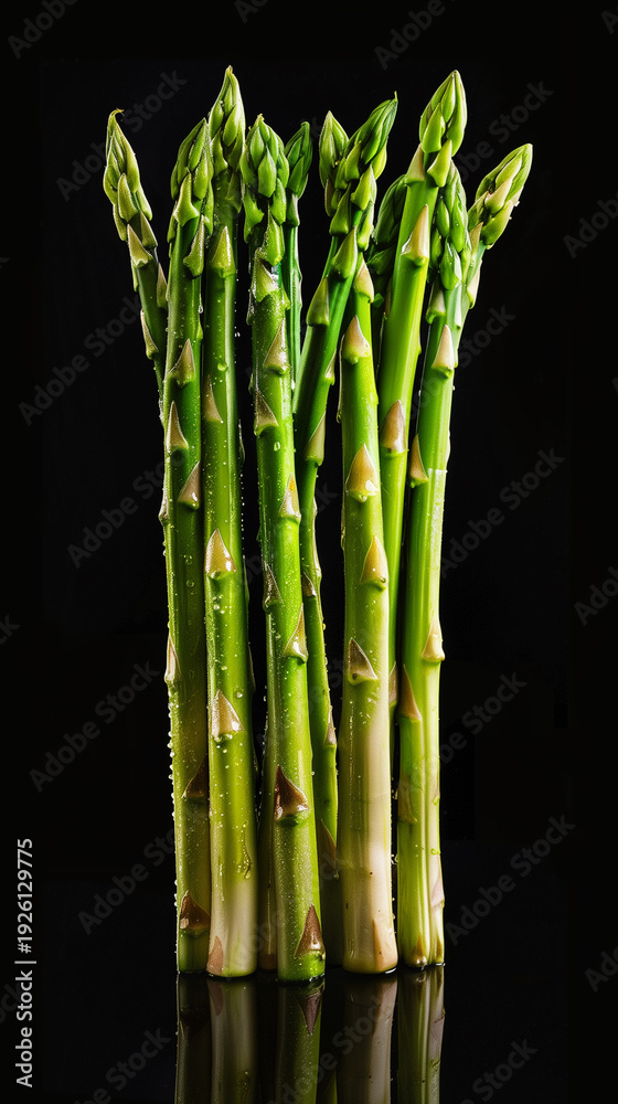 Fresh asparagus spears arranged on a dark surface ready for cooking or eating #1926129775