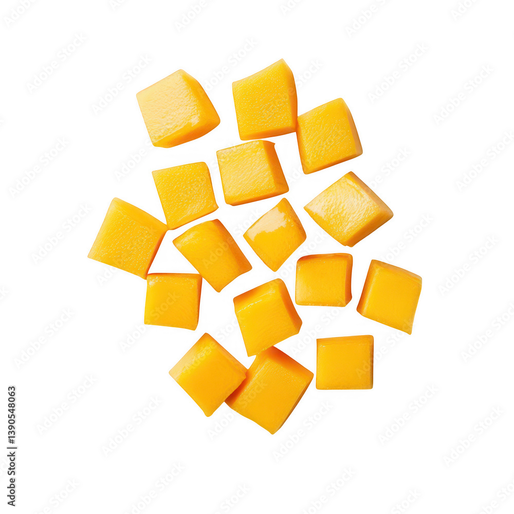 Fresh mango cubes food photography clean environment top view delicious concept #1390548063