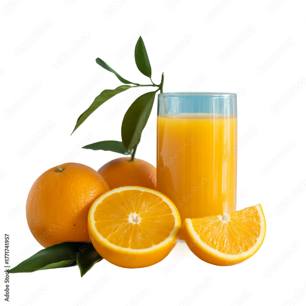 Fresh orange juice in glass and oranges fruit on white wooden table with blue background with copy space. on a white background.png #1771741957