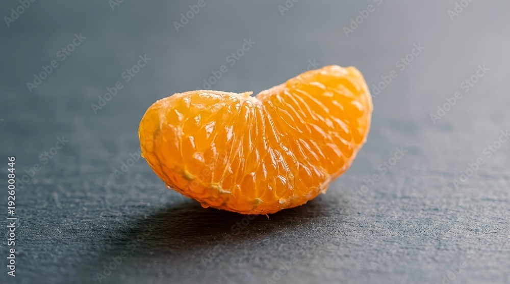 Fresh orange segment(slice) macro on textured grey surface #1926008446