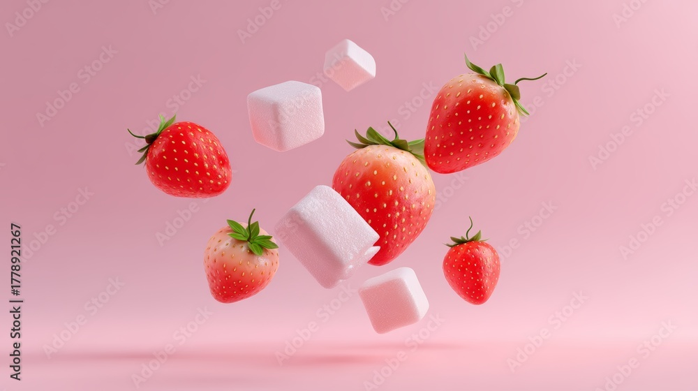 Fresh Photorealistic Render of Strawberries and Sugar Cubes #1778921267