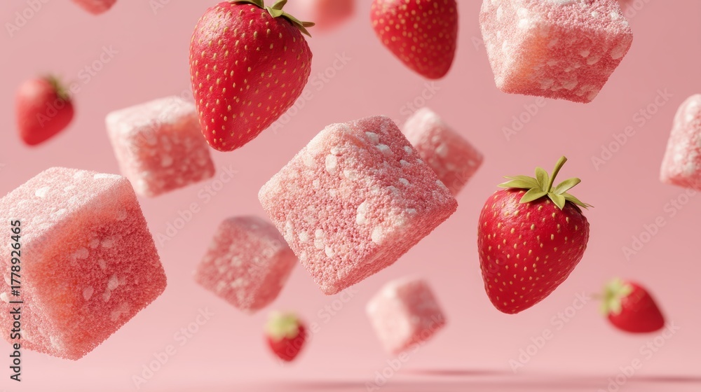 Fresh Strawberries and Candy Cubes on Pink Background #1778926465