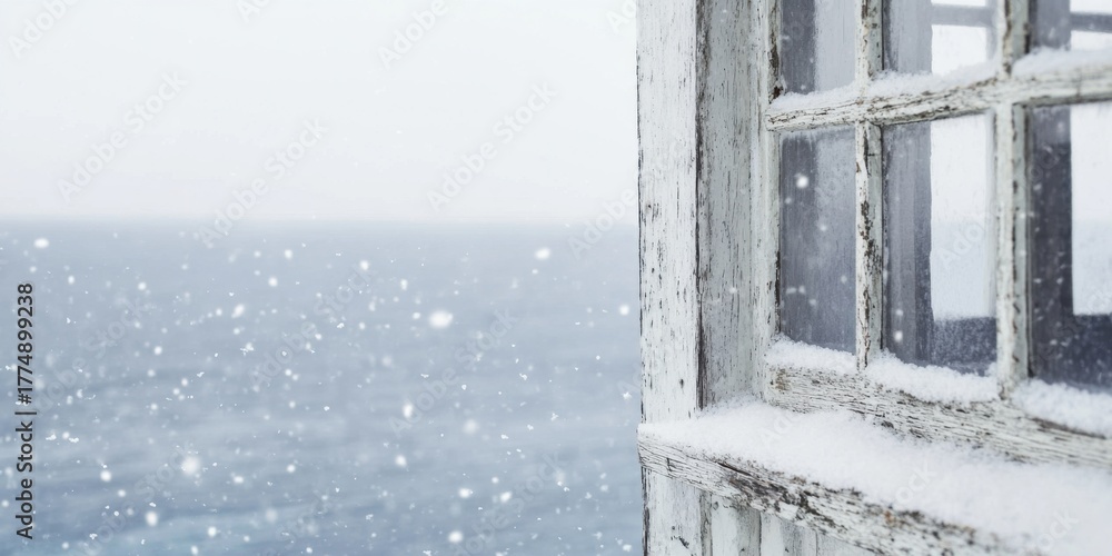 From the window, you can enjoy a stunning snowy view overlooking the vast ocean #1774899238