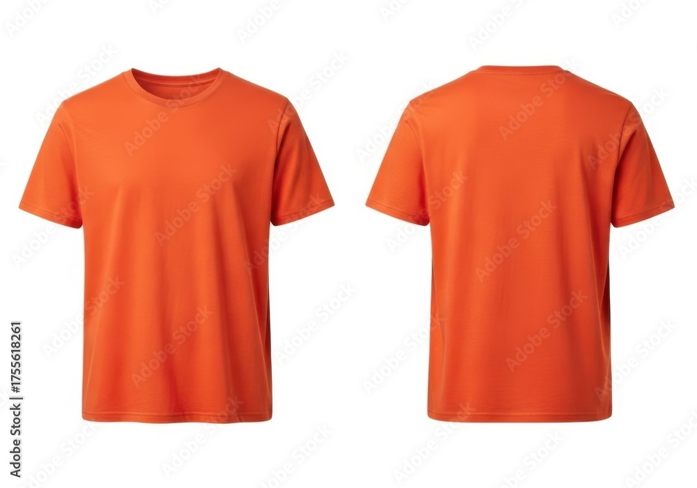 Front and back views of orange tshirt isolated on white background, blank cotton t shirt ready for your design, casual clothing #1755618261