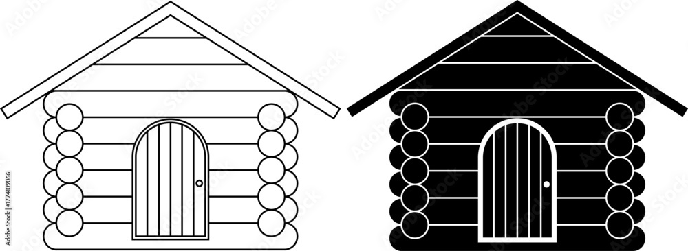 front view Log cabin icon set #1774109066