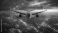 Front view of a jet airliner flying above a glowing cloudscape at sunset with digital network nodes and luminous connections, futuristic, serene and majestic #1805801488