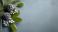 Frosted pine cone green leaf white berry winter decoration minimal background holiday nature festive copy space #1759300837