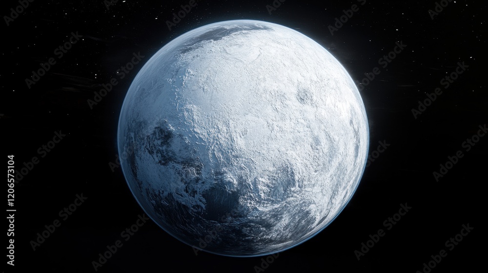 Frozen planet, detailed texture, dark space background. Ideal for sci-fi, climate change, or space exploration projects. #1206573104