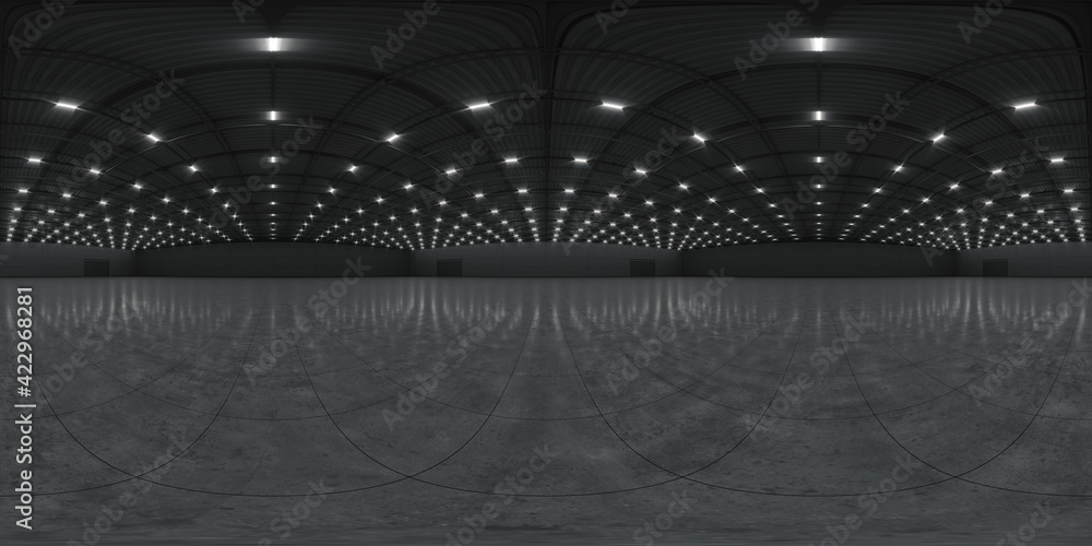 Full spherical hdri panorama 360 degrees of empty exhibition space. backdrop for exhibitions and events. Tile floor. Marketing mock up. 3D render illustration #422968281