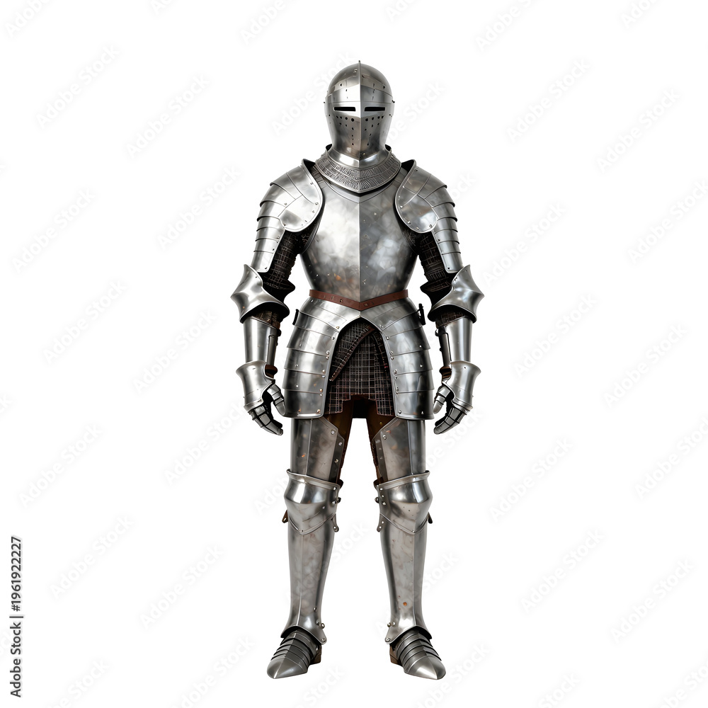 Full suit of plate armor for medieval knight in studio setting #1961922227