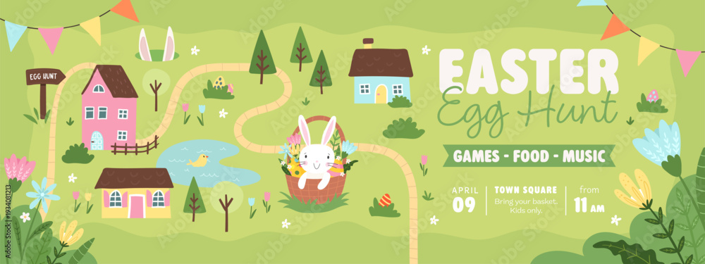 Fun hand drawn Easter design with cute bunnies, flowers and decorative elements, great as banners, wallpapers, poster - vector #1934081213