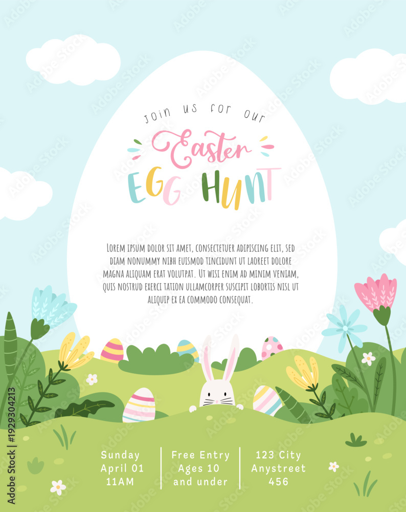 Fun hand drawn Easter Egg Hunt designs with bunnies, Easter eggs and flowers - great for invitations, banners, posters, flyers - vector design #1929304213