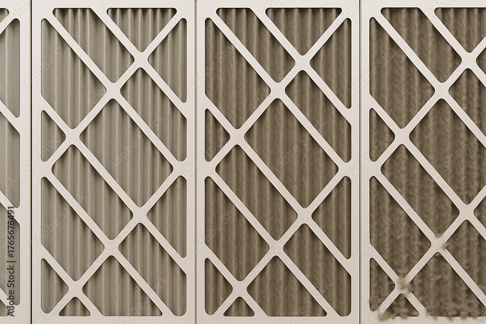 furnace filter air technician. A close-up view of air filters showing a textured surface and geometric patterns, indicating usage and varying levels of filtration. #1765678491