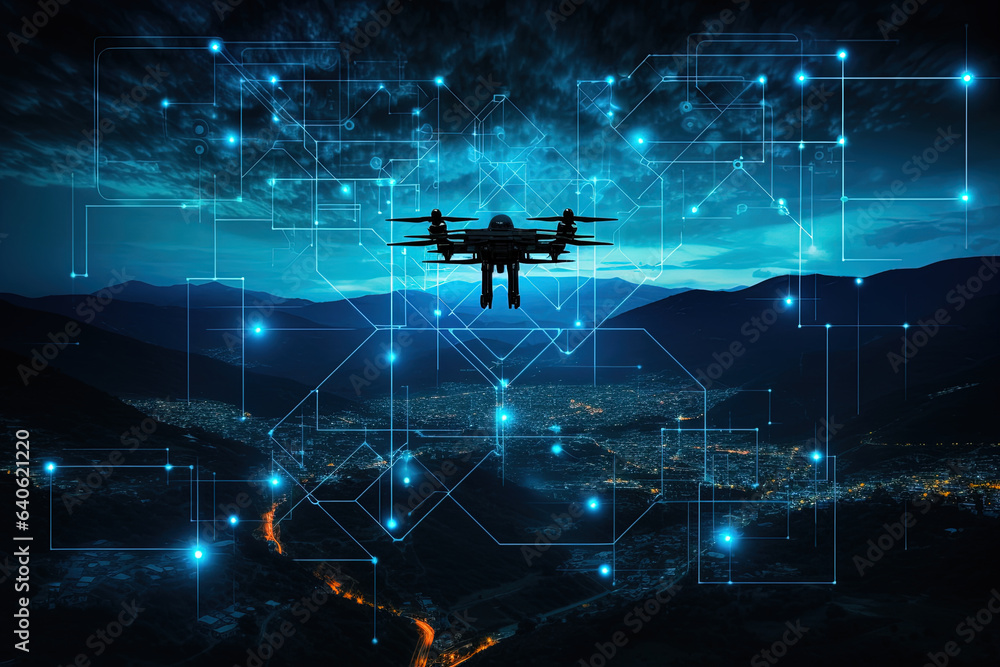 Future data by capturing drone images at night that collect information #640621220