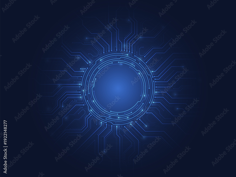 Futuristic artificial intelligence (AI) with a circuit board on a blue background. Circuit board components. Electronics and computer technology. Abstract semiconductor chip. Vector illustration. #1922148277