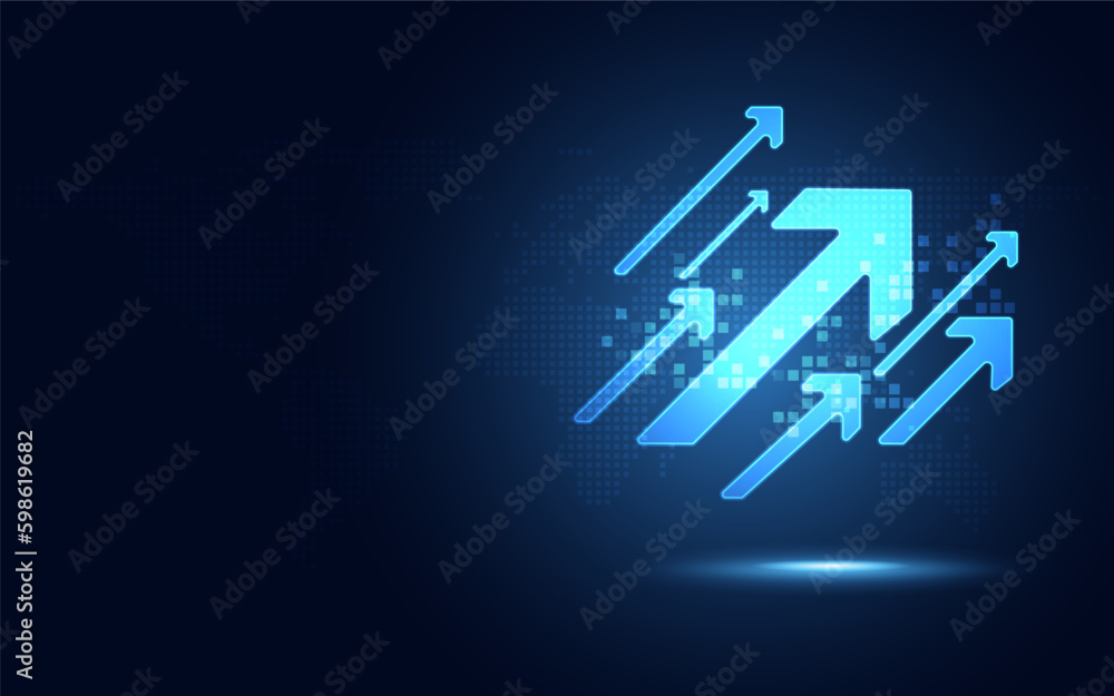 Futuristic blue glowing rising up arrows digital transformation abstract technology background. Big data and business growth currency stock and investment economy. Vector illustration #598619682