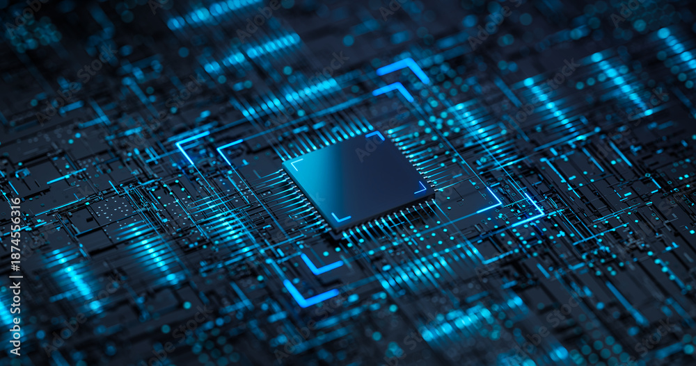 Futuristic CPU Processor on Digital Circuit Board Technology Background #1874556316