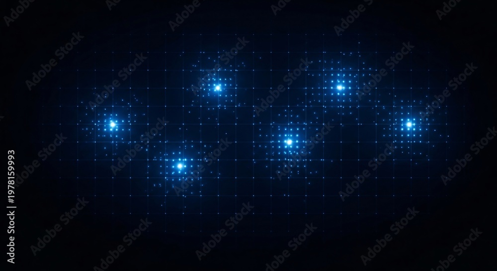 Futuristic digital network with interconnected glowing blue points on dark background for technology innovation connectivity and data communication theme #1978159993