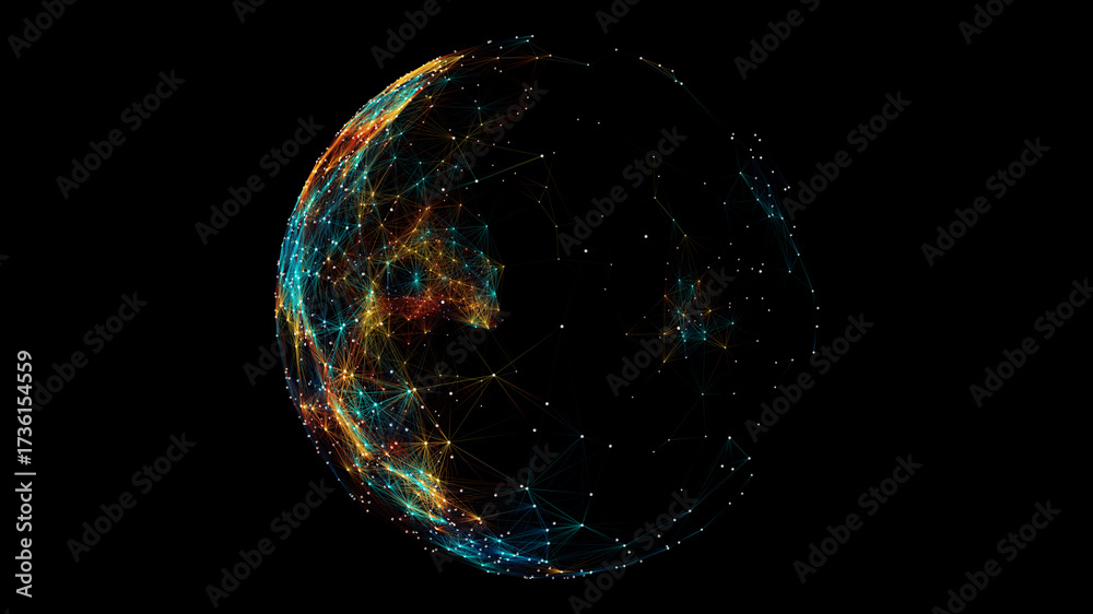 Futuristic digital sphere with glowing network connections, AI, big data, and cybersecurity concept. #1736154559