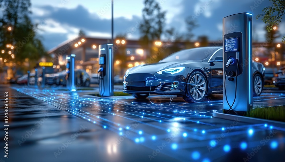 Futuristic Electric Vehicle Charging Station at Night with Blue Light #1243095653