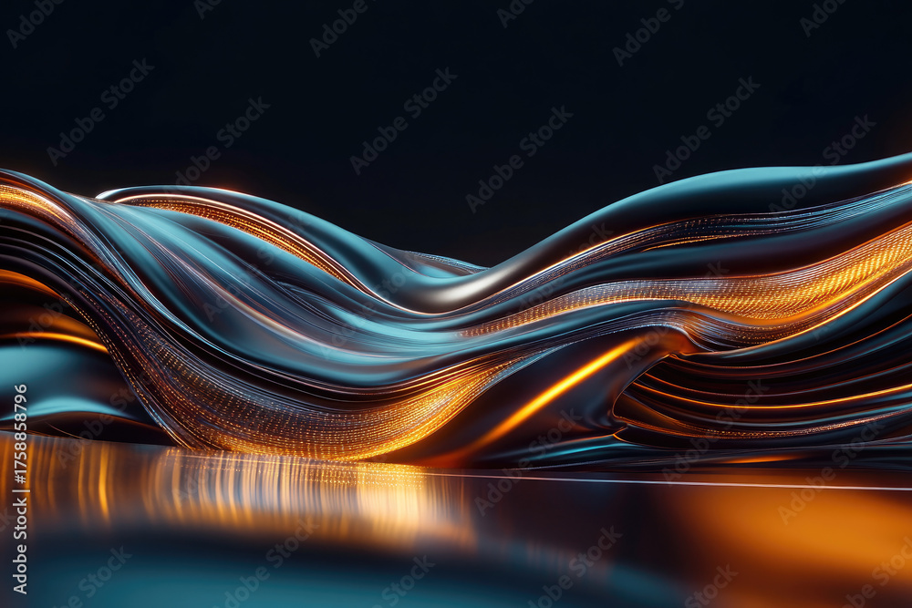 Futuristic flowing metallic wave with glowing lights #1758858796