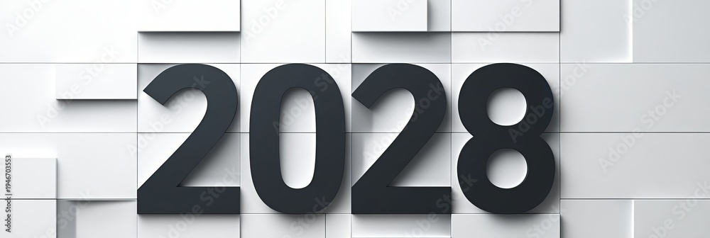Futuristic Geometric Blocks Featuring 2028 Number Design in Modern Gray and White Aesthetic Style #1946703553