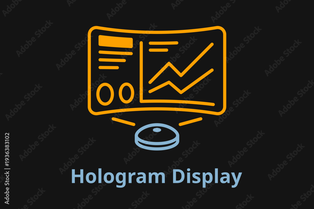 Futuristic hologram display projector with data analysis business graph icon. Modern technology vector illustration with editable strokes. #1936383102