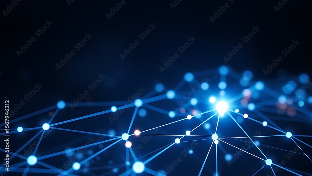 Futuristic network concept with glowing nodes and lines, set against a dark and atmospheric background. #1567946212