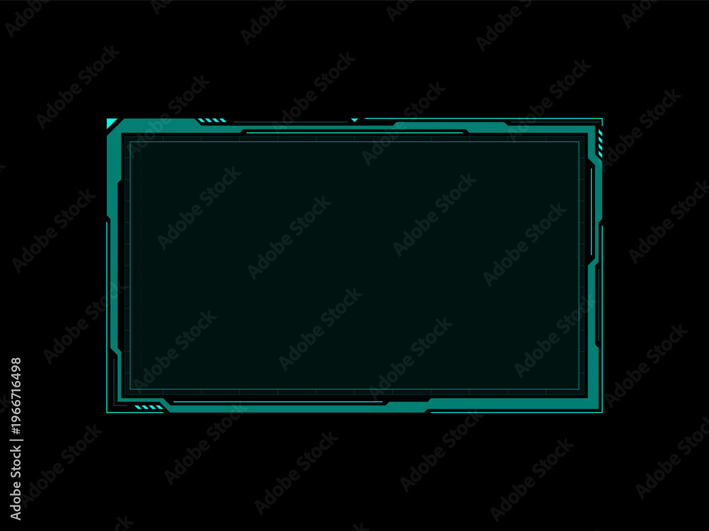 Futuristic Sci-fi HUD border frame with 16:9 aspect ratio for video overlay and digital interface design. #1966716498