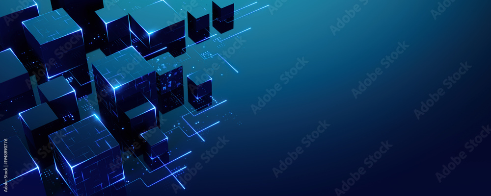Futuristic tech abstract technology background with copy space, Artificial Intelligence, Big Data, Database Concept - 3d illustration #1948990776
